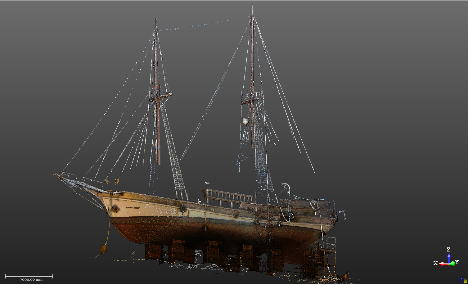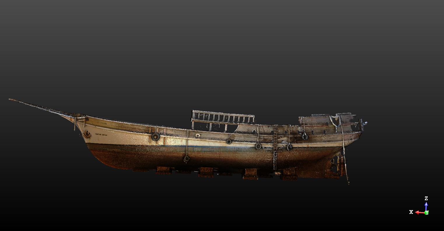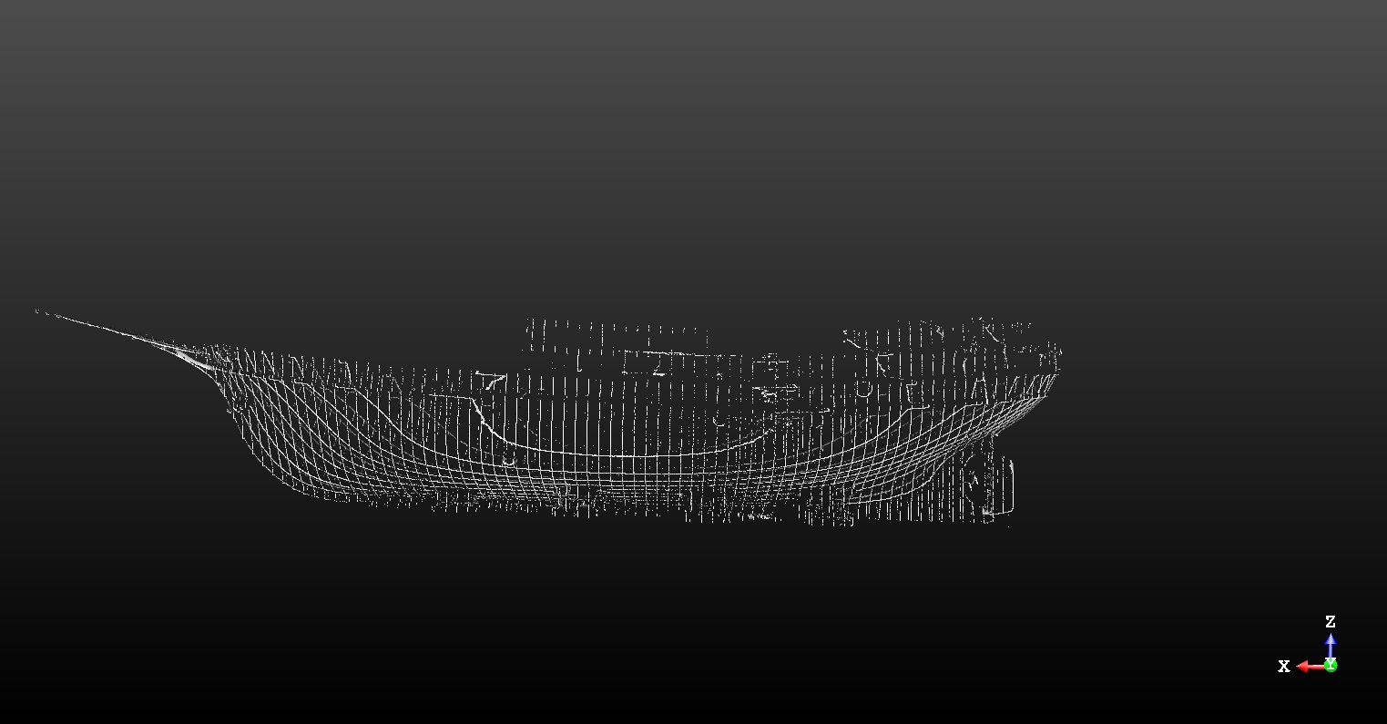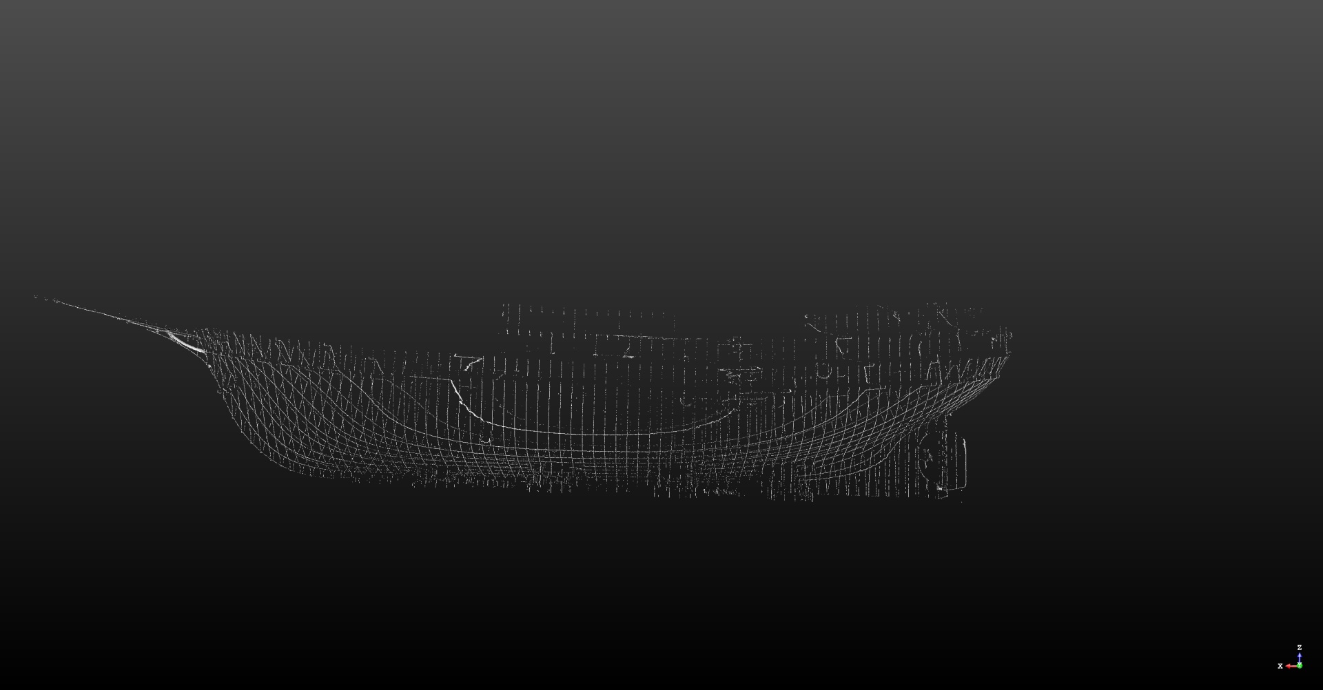 Сканирование, составление облака точек корпуса судна, составление продольных и поперечных сечений корпуса судна. Проект был выполнен летом 2021г.