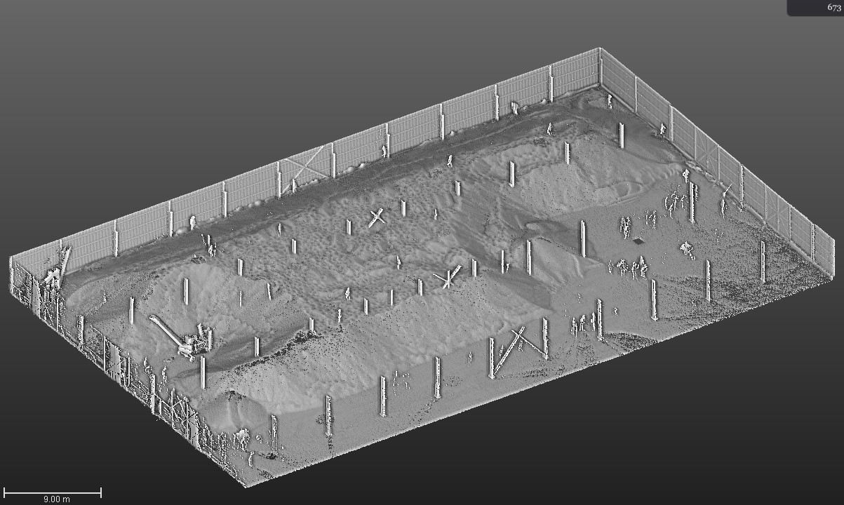 Общая площадь отсканированных помещений составила 3000 м², было сделано 15 сканов. Работа в поле продолжалась 1 день, камеральная обработка – также 1 день.